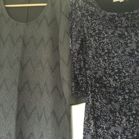 Fine kjoler, den blå fra Saint tropez og den sorte og hvide fra continue begge str L