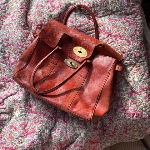 Jeg sælger min Mulberry Bayswater i sort grainet læder med messingbeslag og ikonisk postman’s lock. Den har været med mig i tykt og tyndt – og har derfor den helt rigtige patina og bløde struktur, man ikke får med en ny taske.