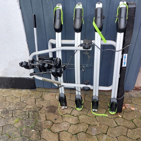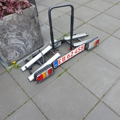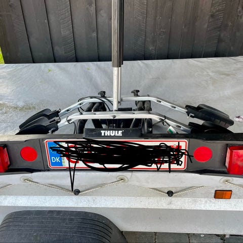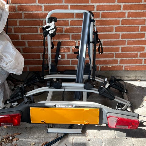 Pro-user cykelholder til anhængertræk med plads til 4 cykler. Cykelholderen har en meget kraftig metalramme med separate skinner til hver cykel og fastgørelsesstropper til hjulene. Der er integrerede baglygter og plads til montering af nummerplade. Velegnet til montering på bilens anhængertræk.