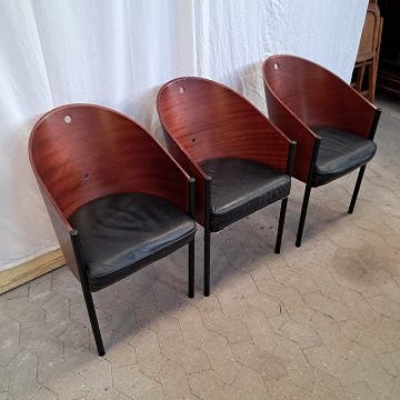 2 stk. Café Costes stole i mahogni. Designet af Philippe Starck. Mahogni og sort læder.