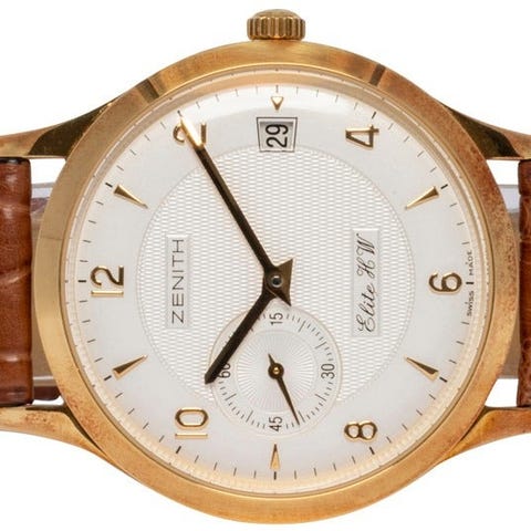 Elegant Zenith ur som måler 44mm og er fremstillet i stål. Uret byder på en flot lys skive med 24-byers verdenstidsreferencering. Hver af jordens 24 primære tidszoner er repræsenteret ved navnet på en betydelig referenceby; 24-timersringen, som er placeret inden for byerne, roterer mod uret. Endvidere byder uret på dato funktion og gangreserve indikator.