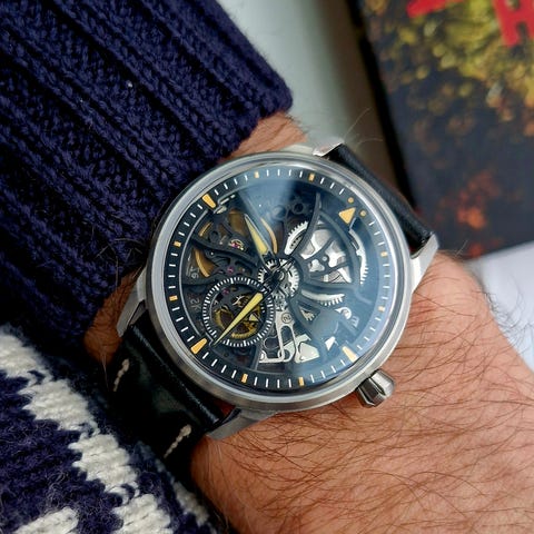 Et stort og markant herre ur på hele 48mm. Ur er udført i stål og udsyret med sort skive, safirglas og fast bagkasse.