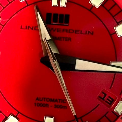 Very neat Linde Werdelin, limited to just 22 examples produced. This DLC coated steel watch measures 46mm and has a very neat black dial with date window at 4 o'clock. The watch is automatic and sits on an original strap.