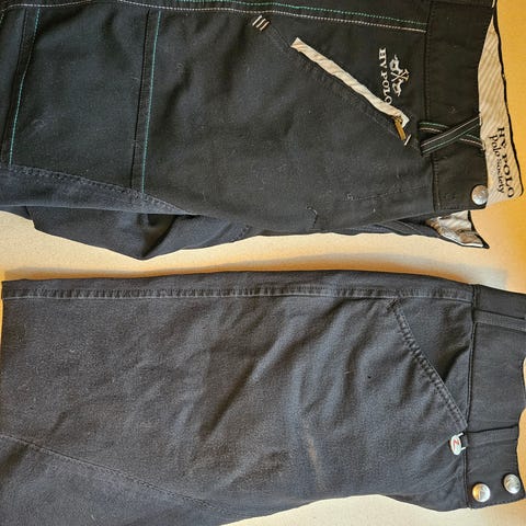 HV Polo ridebukser med fuld silikone. Detalje med logo tape på talje. Rigtig god pasform. Har 2 farver sort og taupe begge str 40. Pris pr stk.