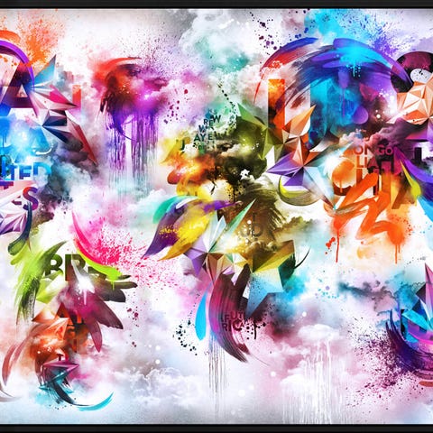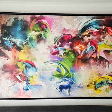 “Crystal Clouds” af Mikael B. Unikt maleri fra kunstnerens første store soloudstilling "Just Be" hos &tradition i Papirhallerne, 2016. Størrelse: 100 x 150 cm.