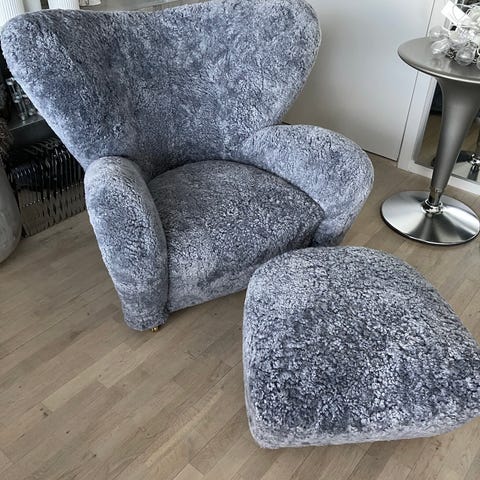 Fleming Lassen Den trætte mand lænestol med skammel i grønt Hallingdal stof