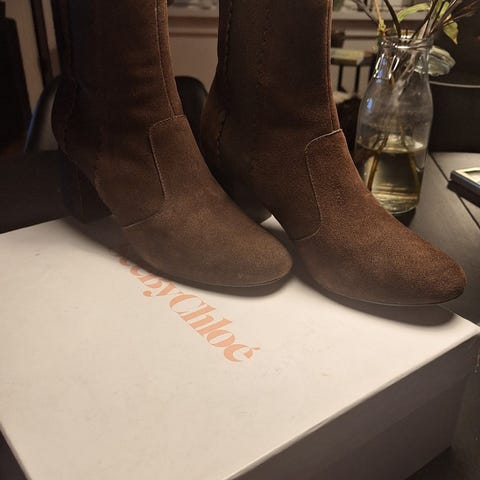 Smukke designerstøvler fra See by Chloé i cognacfarvet ruskind str. 38,5. Klassisk Chelsea-boot model med elastiske sider og fine bølgekant-detaljer.