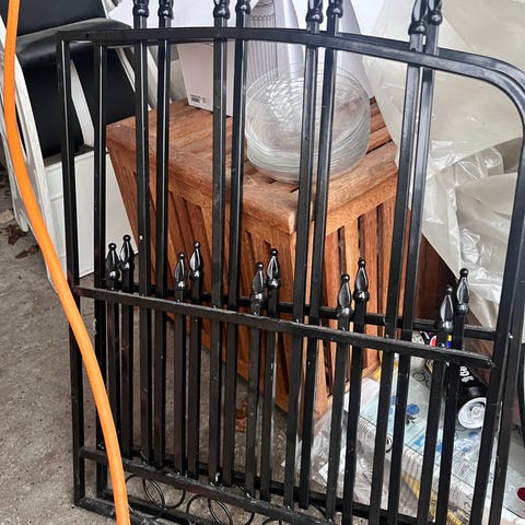 Metalhegn med galvaniseret finish, måler cirka 200 cm i længden og 100 cm i højden. Velegnet til udendørs brug som afgrænsning eller sikring af områder. Hegnet har et netmønster og ramme i metal.