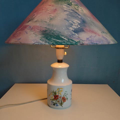 Et unikt stykke vintage design, der fungerer både som samlerobjekt og dekorativ bordlampe i et moderne hjem.