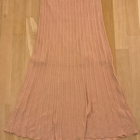 Has a flowy fabric that hits around mid lower legs.