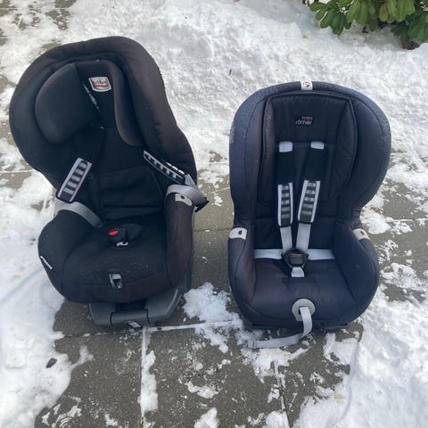 Britax Römer Autostole i størrelse 18, med gråt betræk. Autostolen er designet til børn og har sikkerhedsseler for fastspænding. Materialet på betrækket er blødt og polstret for komfort. Autostolen har justerbare funktioner for bedre pasform og sikkerhed under transport. Betrækket er lidt slidt men stolen er helt ok.