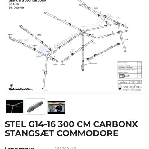 Ventura stangsæt G18 Dybde 300 cm Fiber Incl pløkker og pose.Nypris ca 5000 kr Skal afhentes i Helsingør