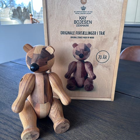 I 2022 fyldte Bjørnen 70 år. Det fejres med Reworked Bjørnen, som har et 70 års jubilæumsstempel på labben og kommer i en særlig jubilæumsæske af træ i et begrænset antal. Bjørnene er en hyldest til Kay Bojesens originale design. Med sit bæredygtige udgangspunkt bliver Reworked Bjørnen både en fejring og et standpunkt, født ud af et princip om ansvarlighed i håndværk og design. I fremstillingsprocessen bruges ganske enkelt det resttræ og frasorterede træ, der er til rådighed, og derfor vil hver enkelt Reworked Bjørn se forskellig ud afhængig af, hvilke træsorter, der er tilovers, den dag de produceres. Bjørnene er skabt i hånden med kærlighed og omhyggelighed på præcis samme måde, som de er blevet siden 1952, hvor den venlige Bjørn med de åbne arme kom til verden. Bjørnen blev oprindeligt inspireret af en bjørneunge ved navn Ursula fra Zoologisk Have, som var for lille til at bo med de voksne dyr i buret. Derfor havde inspektøren for Zoo ungen boende hjemme, indtil den var voksen nok til at bo med de større bjørne. Den søde historie inspirerede Bojesen til at lave den lille bjørnefigur. Med genbrugstræ fortolkes Kay Bojesens ikoniske design på en ny og moderne måde i tråd med tidsånden. Designarv, træ og nytænkning forenes og gør Reworked Bjørnen til et ægte samlerobjekt med en helt unik personlighed i kraft af de forskellige træsorter, der også er med til at fremhæve Bjørnens ikoniske former på en ny og overraskende måde.