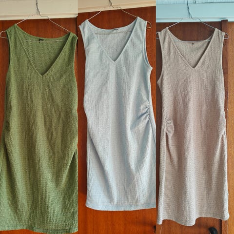 Helt nyt sæt ventetøj / graviditetstøj med kortærmet bluse og lange bukser. Blusen har sløjfe der kan bindes i den ene side i bunden og v halsudskæring. Elastik talje i bukserne og lommer foran. Stadig med prismærker da jeg aldrig nåede at tage det i brug. Nypris 550 kr for begge dele. Sælges samlet