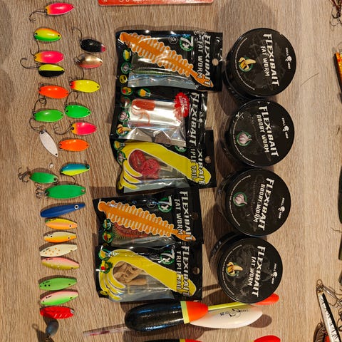 Live bait taske fra Pezon Michel samt Quiet Bubbles luftpumpe på batteri. Jeg har haft den liggende nogen år, men aldrig brugt den.