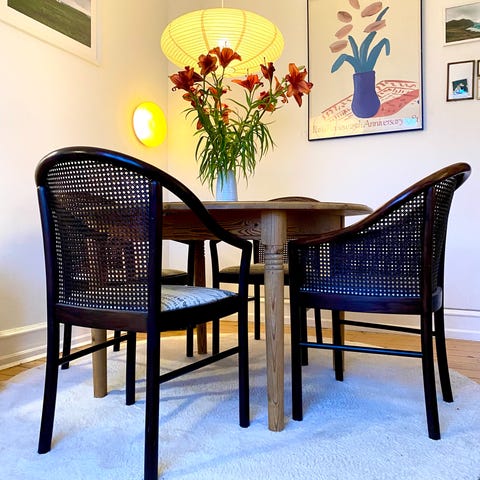 Thonet spisebordsstole i formbøjet træ og med fransk flet