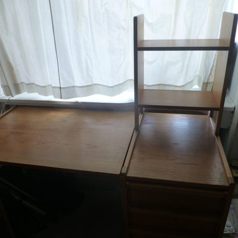 Stor anvendelighed med sin kæmpe bordflade og genialt udført med 5 store, rummelige og aflåselige skuffer, samt integreret bogreol på dets bagside. Nemt at sidde ved og køre en hvilken som helst kontorstol ind under.