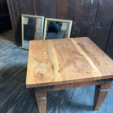 Bord i mørkt træ med aftagelige ben. I god stand, men med enkelte små mærker (se sidste billede).