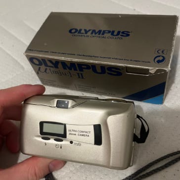 Det klassiske olympus mju i sælges på grund af oprydning. Kameraet har brugsspor, men fungerer upåklageligt.