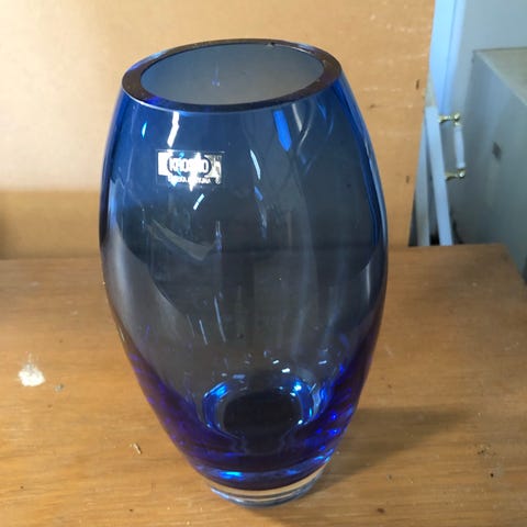 Krosno glasvas i grøn farve med trekantet form. Vasen er lavet af glas og har en moderne, geometrisk design. Ca 25 cm høj