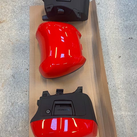Originalt taskesæt fra Honda. Komplet med beslag, tasker, indertasker, bolte, osv. Har siddet på en 2024 Transalp, alle monteringsbeslag hertil medfølger.