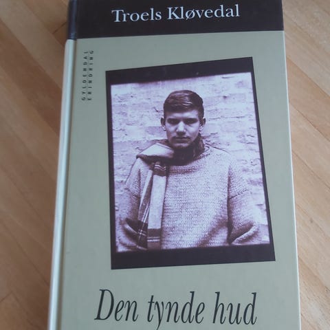 Den tynde hud - Erindringer om en barndom og opvæk, Troels Kløvedal, genre: biografi, Hardcover udgave fra 1995 i god stand, dog slidt på smudsomslaget.
