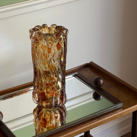 Vintage red/orange Murano vase Italy 1970'sGood vintage condition H24 x W15 cmPlease note that the handmade Murano glass can have small imperfections and unique characteristics, e.g. air bubbles or variations in patterns and shapes etc.