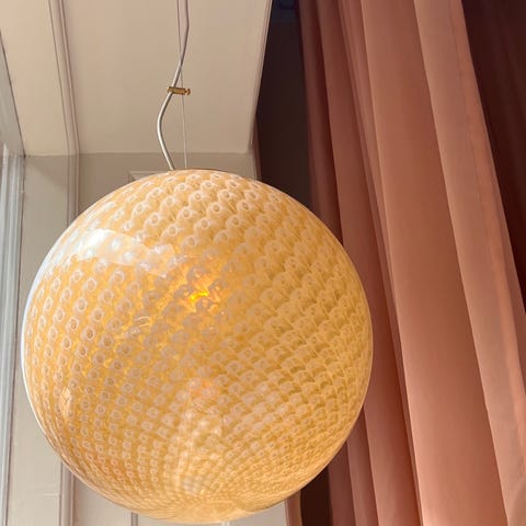 Candy ceiling lamp Golden/clear dotted mouth-blown glass, D 30 cmBrass canopy, Comes with adjustable mounting/wireNew condition, Made in ItalyThe ceiling lamp is new, made in Italy by a Murano master in original forms and in mouth-blown glass.*Please be aware that all lamps are handmade and unique and can therefore differ slightly in colours, patterns etc. from the one in the photo. The mouth-blown glass can have small imperfections and unique characteristics, e.g. air bubbles or variations in patterns and shapes