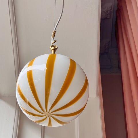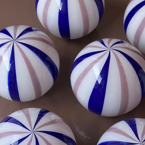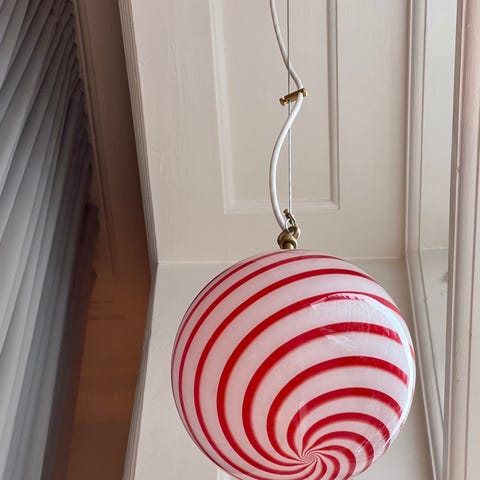 Candy ceiling lamp Auburn/white mouth-blown glass, D 20 cmBrass canopy, Comes with adjustable mounting/wireNew condition, Made in Italy The ceiling lamp is new, made in Italy by a Murano master in original forms and in mouth-blown glass.*Please be aware that all lamps are handmade and unique and can therefore differ slightly from the one in the photo. The mouth-blown glass can have small imperfections and unique characteristics, e.g. air bubbles or variations in patterns and shapes etc.