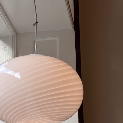 Vintage Murano oval white swirl ceiling lamp (D40)