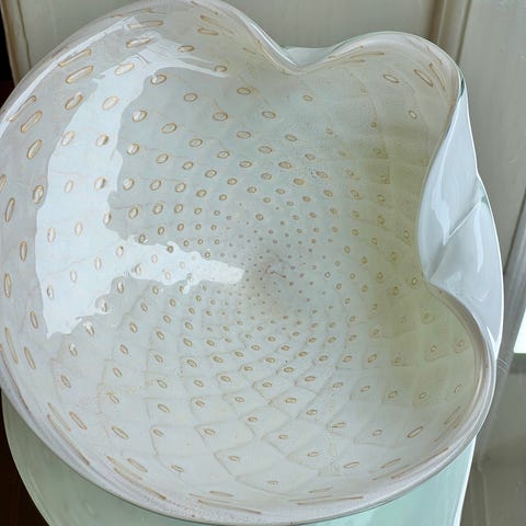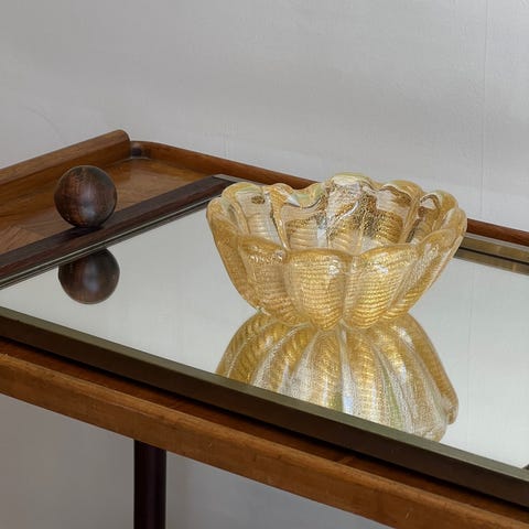Vintage golden Murano shell bowl, Italy 1970's Good vintage condition W15 x H12 cmPlease note that the handmade Murano glass can have small imperfections and unique characteristics, e.g. air bubbles or variations in patterns and shapes etc.