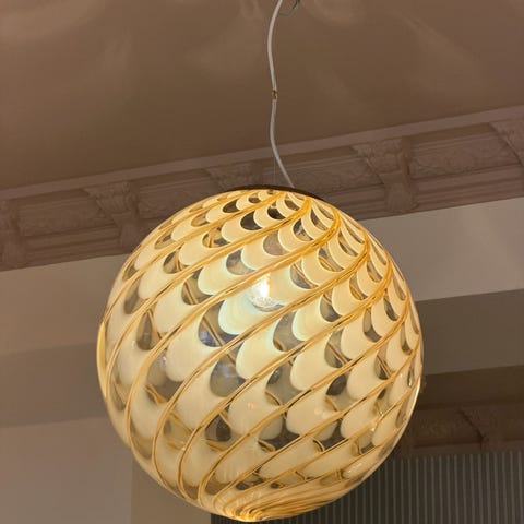 Large vintage golden clear Murano ceiling lamp, Handmade in Italy circa 1970s. Good vintage condition, D50 cm. The lamp creates a beautiful play of light and shadows in any room due to its transparent glass and beautiful unique swirl pattern. Comes with a chrome canopy and an adjustable mounting/wire. Please note that the handmade Murano glass can have small imperfections and unique characteristics, e.g. air bubbles or variations in patterns and shapes etc.