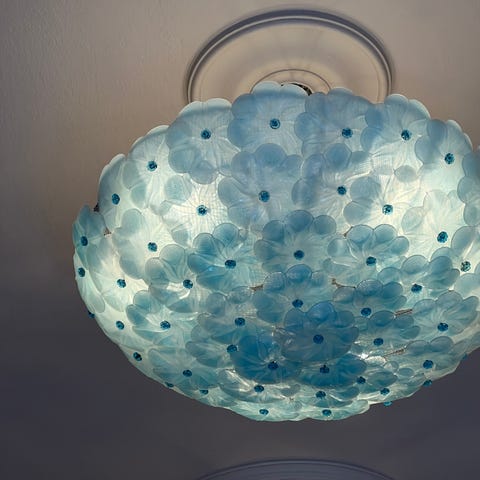 Vintage blue/clear Murano flower ceiling/wall lamp (D38) (2 available)