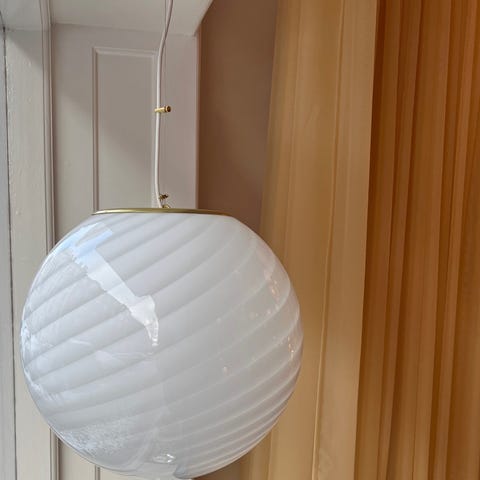 Candy ceiling lamp White mouth-blown glass, D 30 cmBrass canopy, Comes with adjustable mounting/wireNew condition, Made in ItalyThe ceiling lamp is new, made in Italy by a Murano master in original forms and in mouth-blown glass.*Please be aware that all lamps are handmade and unique and can therefore differ slightly from the one in the photo.The mouth-blown glass can have small imperfections and unique characteristics, e.g. air bubbles or variations in patterns and shapes etc.