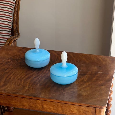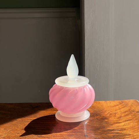 Vintage opal/milky yellow Murano bonbonniere, Italy 1970sGood vintage condition H16 x W18 cmPlease note that the handmade Murano glass can have small imperfections and unique characteristics, e.g. air bubbles or variations in patterns and shapes etc.