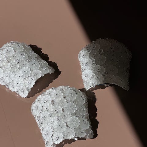 Vintage blue Murano flower wall lampW24 x H18 x D12 cmGood vintage condition The lamp can be mounted directly on a hook and be used as a wall lamp only. Comes with golden cotton braided wire with switch. Please note that the handmade Murano glass can have small imperfections and unique characteristics, e.g. air bubbles or variations in patterns and shapes etc.