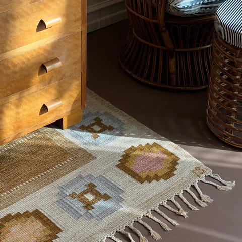 Vintage pink flat weave rug by Ingegerd Silow (IS)