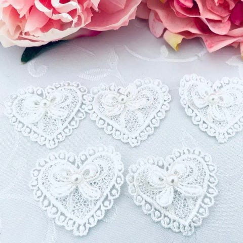 Pynt, blonde, hjerte, dekoration, krave, 1 i hvid og 1 i sort, applikation. Sælges kun samlet. Prisen er for begge. Fast pris