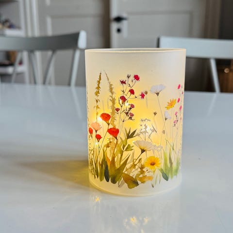 Lampen har et blødt og børnevenligt design med en lille stilk på toppen. Den er egnet til brug som natlys i børneværelset eller andre rum, hvor et dæmpet lys ønskes.