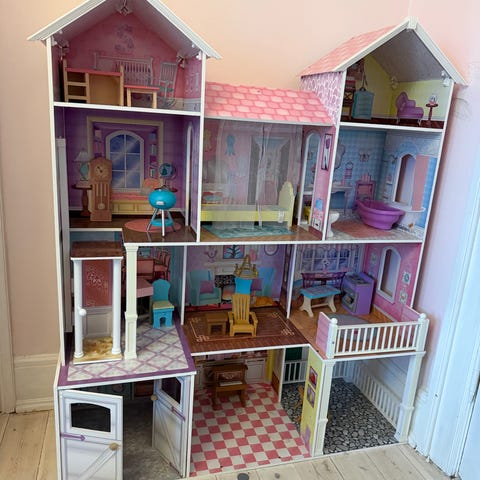 Huset har brugsspor (trænger til en lille reparation), møblerne er OK. Jeg har flere Barbie-dukker i andre annoncer, og jeg kan sælge dem alle samlet for meget billigere