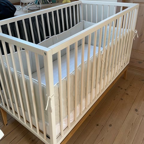 Sengen er i god stand og meget smuk. Vi har benyttet den til vores dreng fra han var otte måneder - først med en baby-nest i og senere uden.