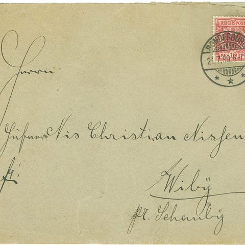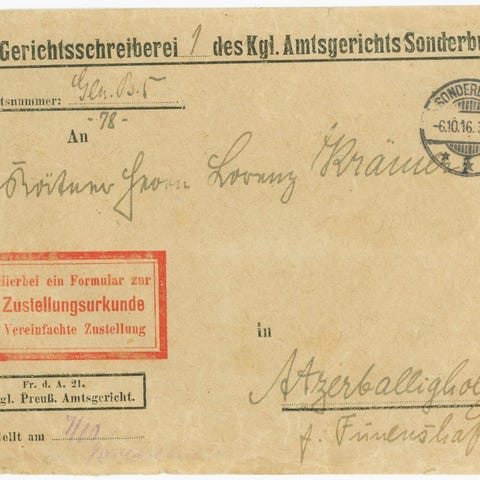 Ufrankeret tjenestebrev med fuldt indhold fra den Kgl. Herredsfoged i Augustenborg. Stemplet Augustenburg 27.5.1869, sendt til Kjær v. Sønderborg. Bagpå to Ausg. stempler fra 27.5. og 28.5. samt flot komplet og ubrudt laksegl med teksten ”Königl. Hardesvogtei Augustenburg ” og den tyske ørn. Forsendelse i bedste kvalitet.