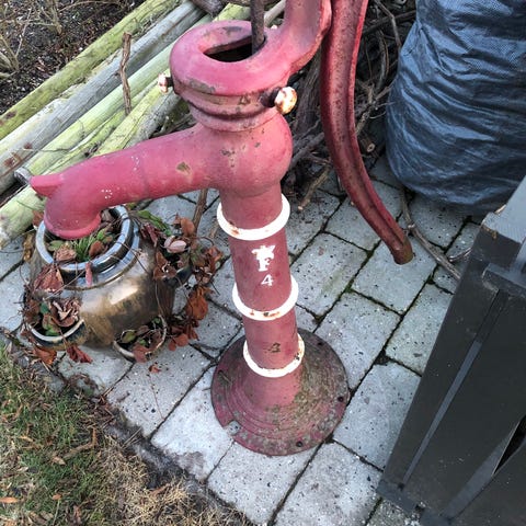 Gammel Håndpumpe i Jern Rød kun til pynt
