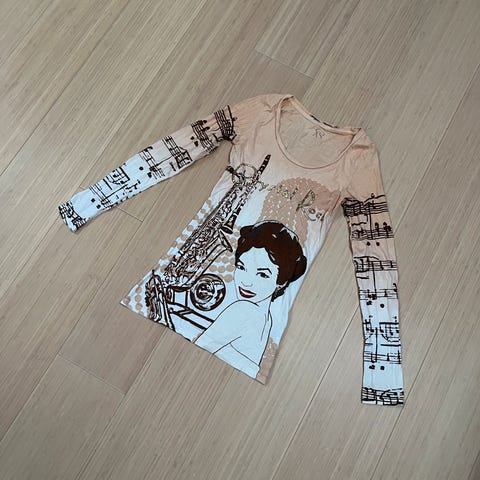 Pæn T-shirt XL, Madonna med glimmer bag. Pris: 1300,-kr.