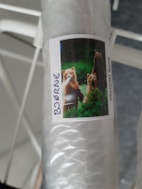 har ikke været brugt, men har været rullet sammen med elastik om og i pose. for noget siden.