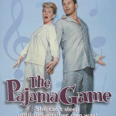 The Pajama Game DVD featuring Doris Day. This film is a classic musical comedy that includes performances by Doris Day and other cast members. The DVD format allows for viewing on compatible players.