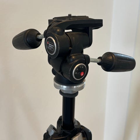 Manfrotto 701HDV tripod og etui. Kun brugt ved en enkelt lejlighed, i god stand. Originalpris: 3000 for tripod, 300 for etui.