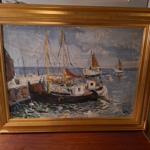 Stort farverigt, Olie maleri udført af Aage Strand. (AS)( 1910-1974 ) Klassisk