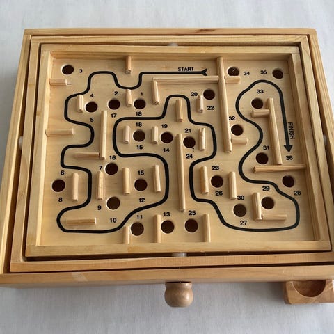 Gaffel-Labyrint Spil i Træ fra 1973 udgivet af Brio