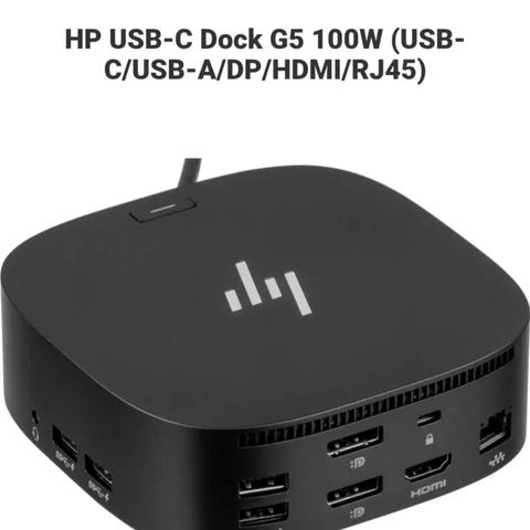 HP Slim Docking Station adapter med flere porte inklusive VGA, Ethernet og USB-porte. Designet til at udvide tilslutningsmulighederne for bærbare computere ved at tilbyde ekstra tilslutningsmuligheder i en kompakt dockningsstation.